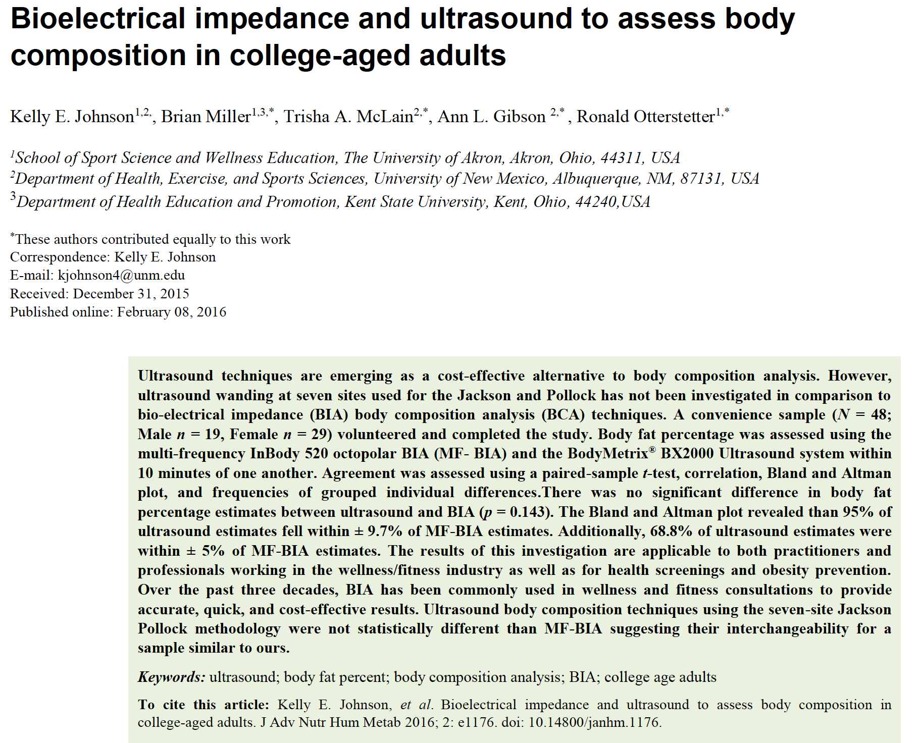 Studies Comparing BodyMetrix™ to DEXA, Bodpod, Hydrostatic, BIA, and Skinfold Calipers