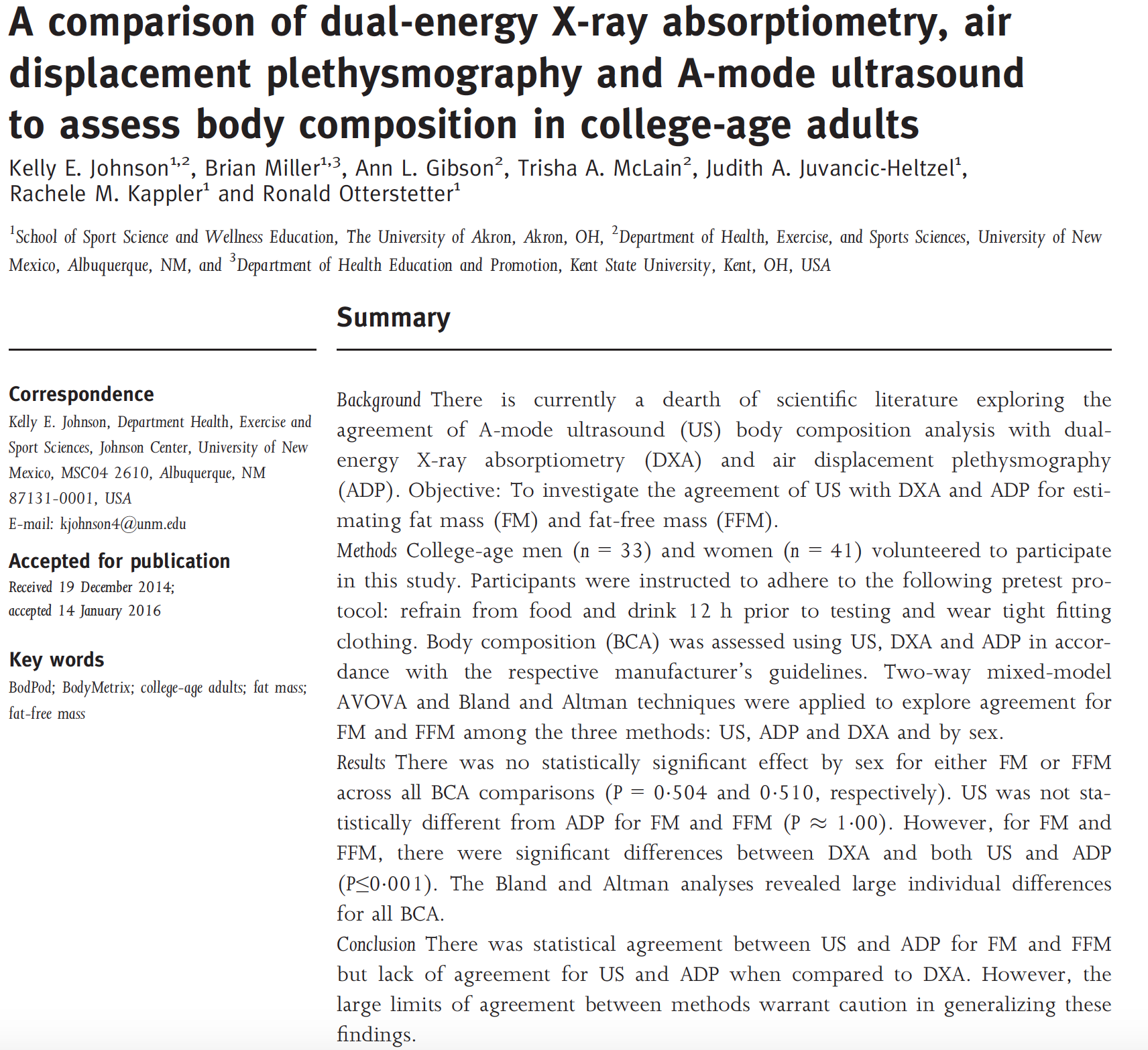 Below are summaries of several studies which have compared the BodyMetrix™ to DEXA, BodPod, Hydrostatic, and Bio-impedance.